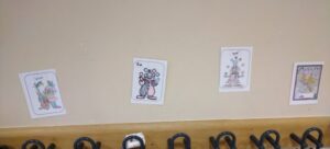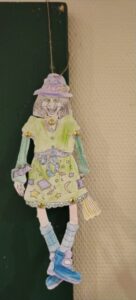 En arts visuels, chaque élève a réalisé son étiquette porte manteau et un mobile de jolie sorcière.